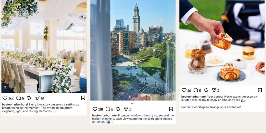 At GCommerce, we’ve seen hospitality brands like Boston Harbor Hotel achieve stronger performance when captions are tailored to the platform and audience. For example, short, experience-driven captions paired with stunning visuals tend to perform well on Instagram, while longer, story-focused copy that highlights seasonal offerings or guest experiences can drive deeper engagement on Facebook. Well-written, platform-specific copy helps set expectations, spark interest, and create meaningful interaction.